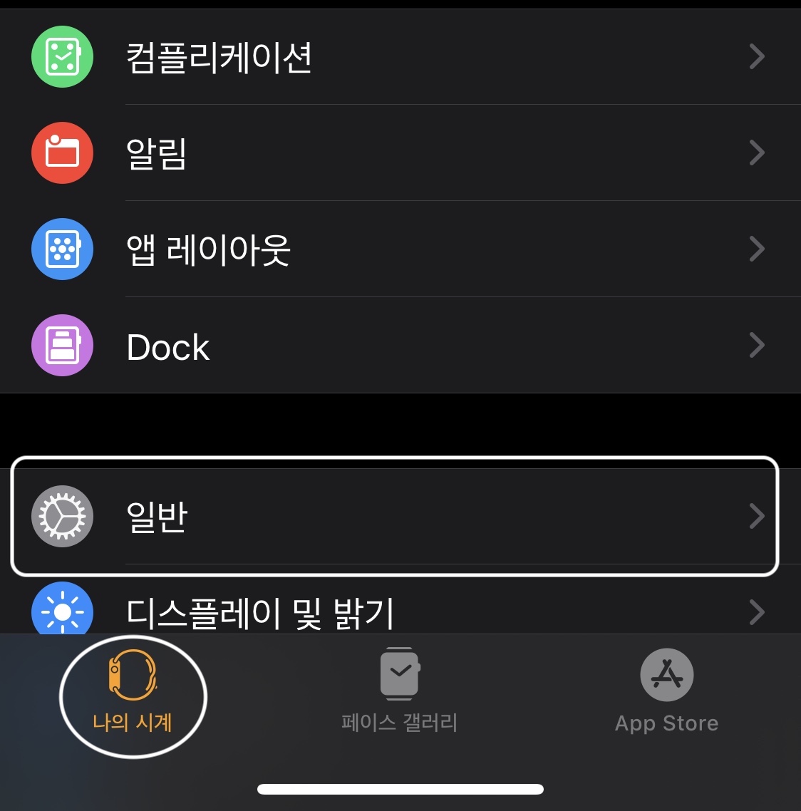 하단 나의 시계 탭에서 일반 메뉴를 선택한다.
