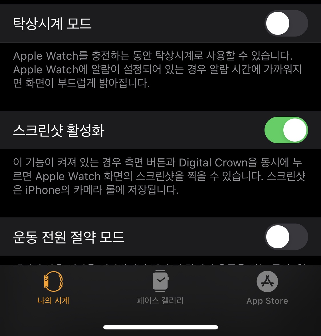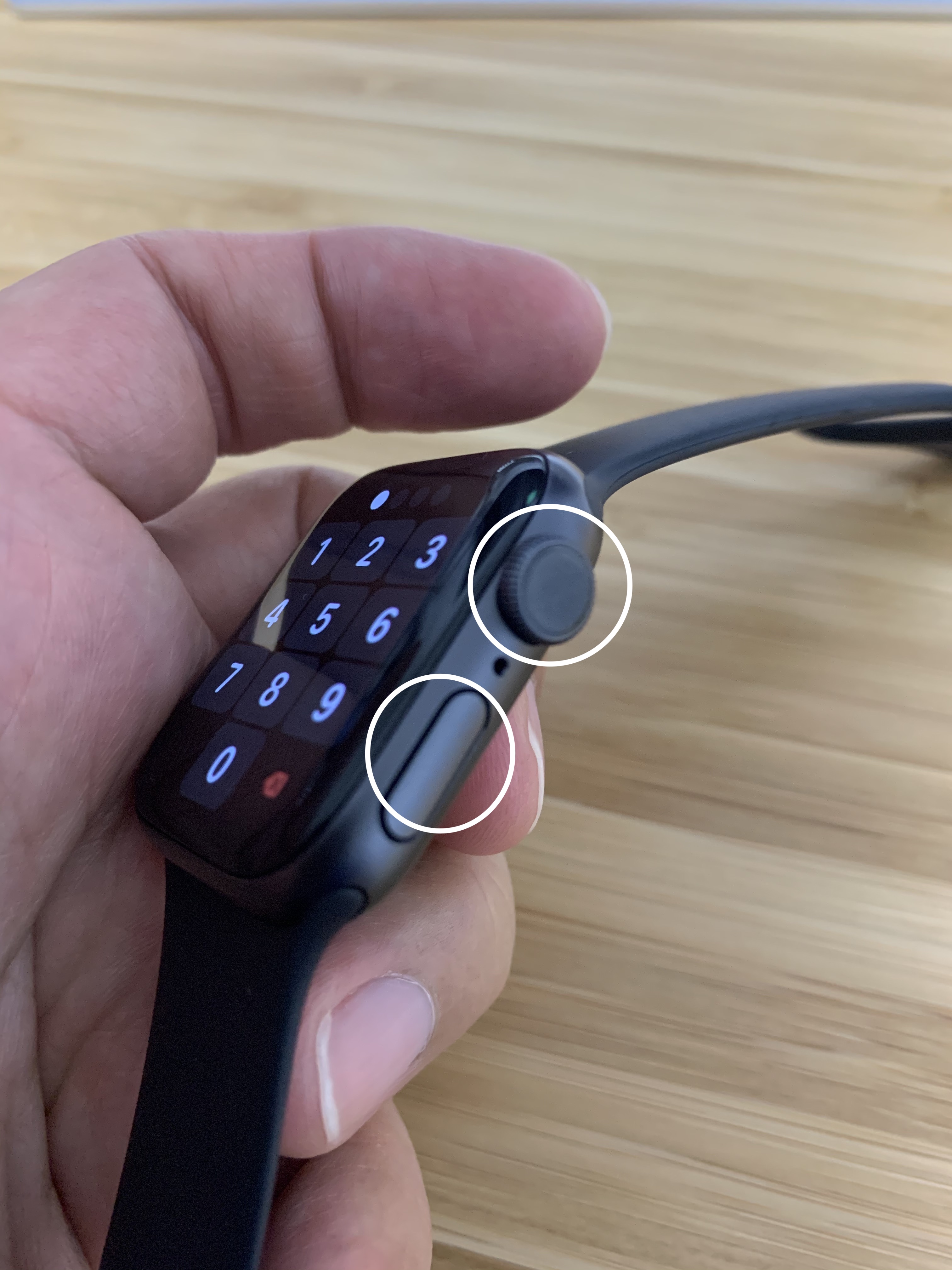 이제 아래 사진과 같이 워치의 휠과 버튼을 동시에 누르면 캡처가 된다.