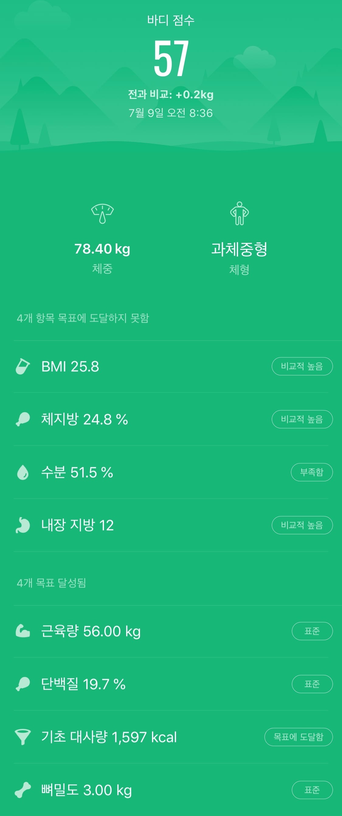 그런데 이게 무슨 일.... 열심히 운동했는데... 체중과 체지방은 오히려 늘었다.