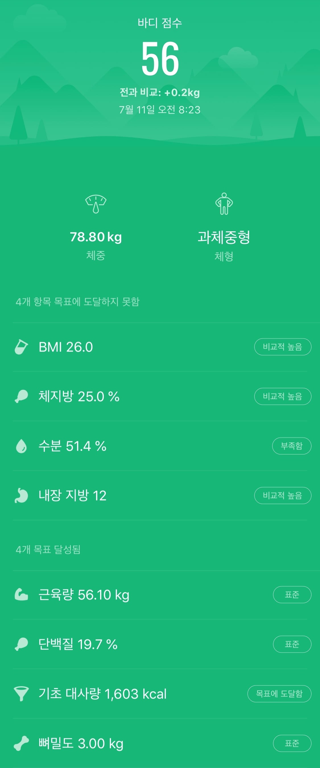 어제 예상했던 대로 소고기와 와인으로 인해 점수가 1점 내려갔다.