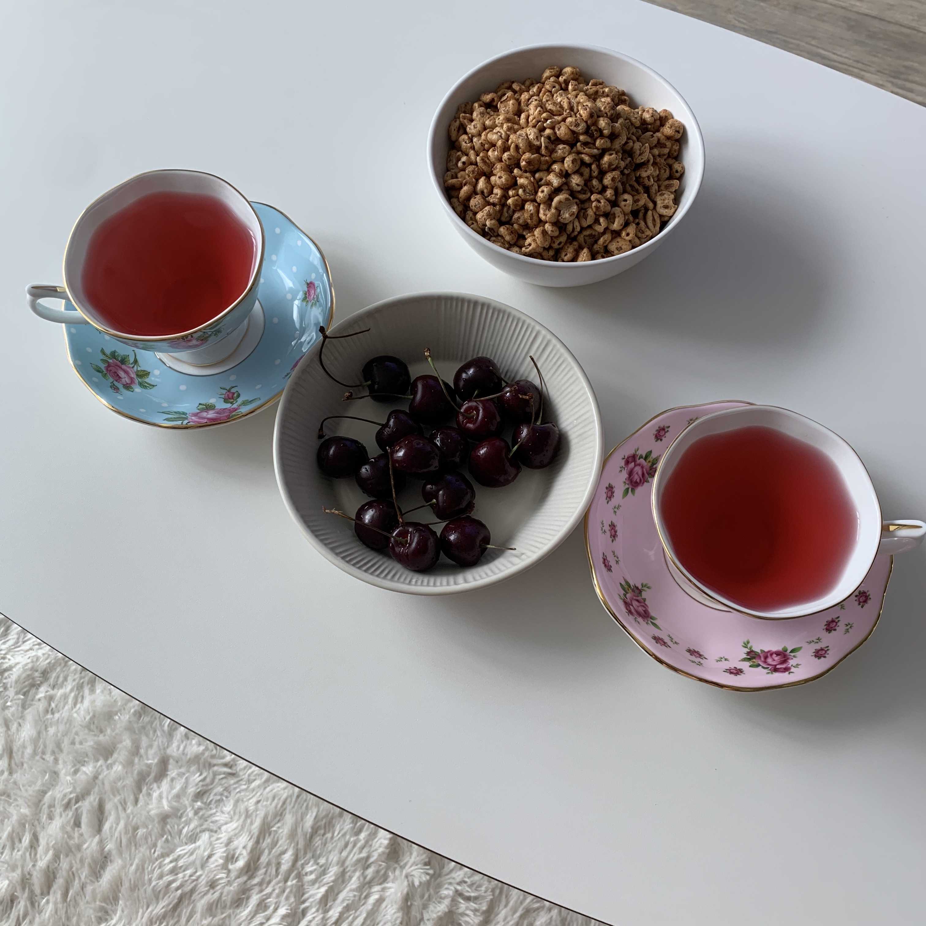 아내가 히비스커스 차 와 체리, 그리고 죠리퐁! 을 준비해줬다.
