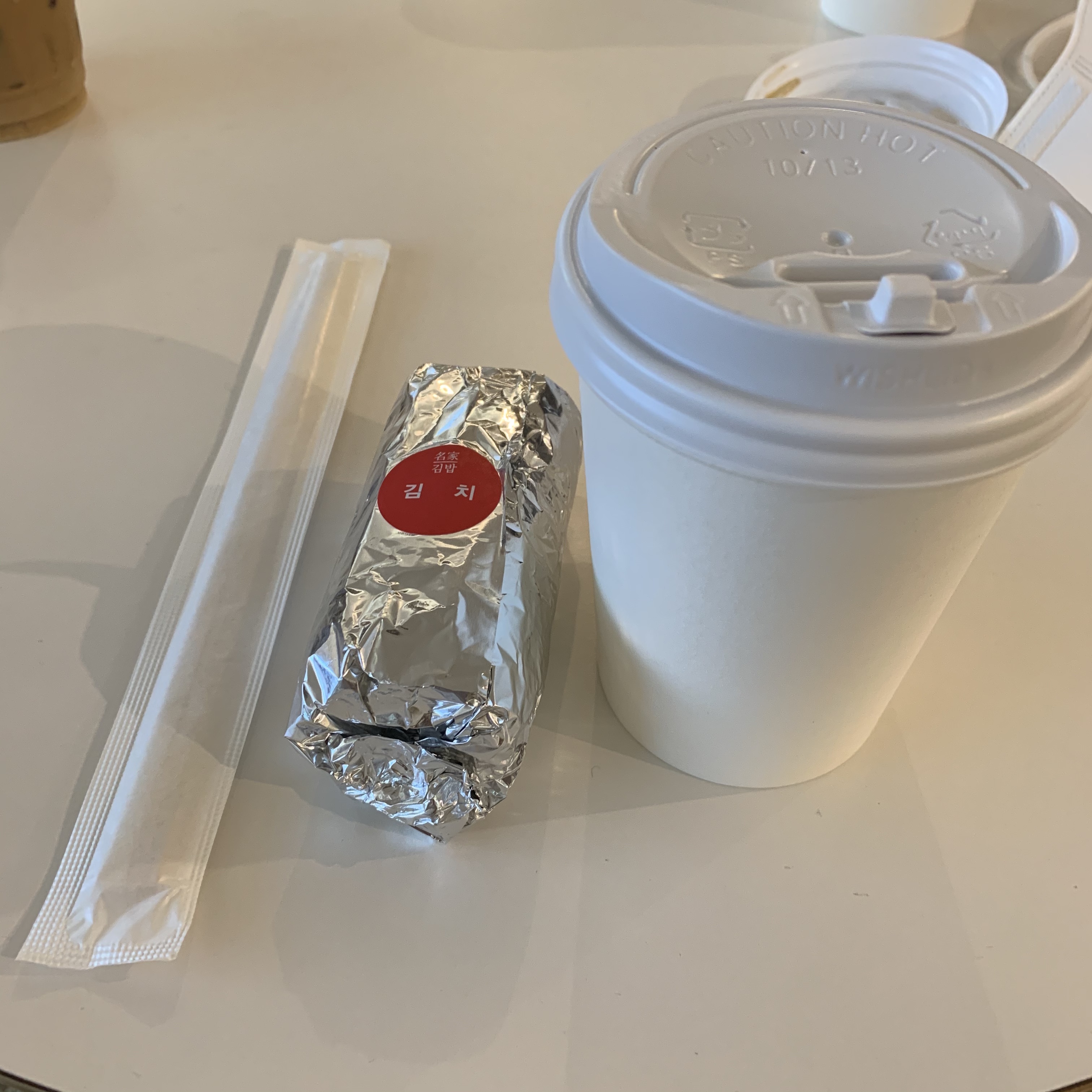 회사 카페에서 커피와 김밥으로 아침을 먹었다.