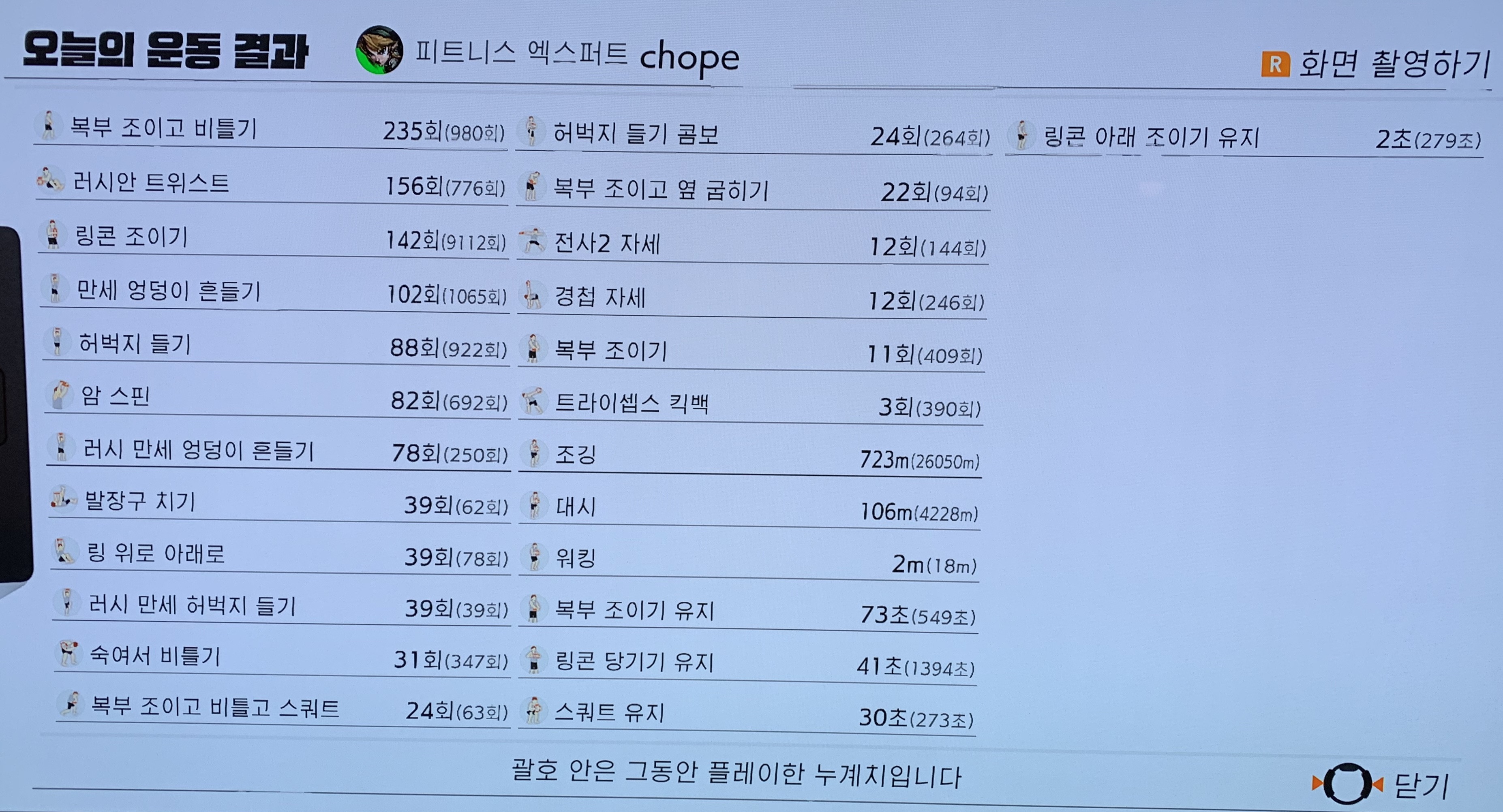 오늘 링피트를 했으니 내일은 점수가 올라가길....