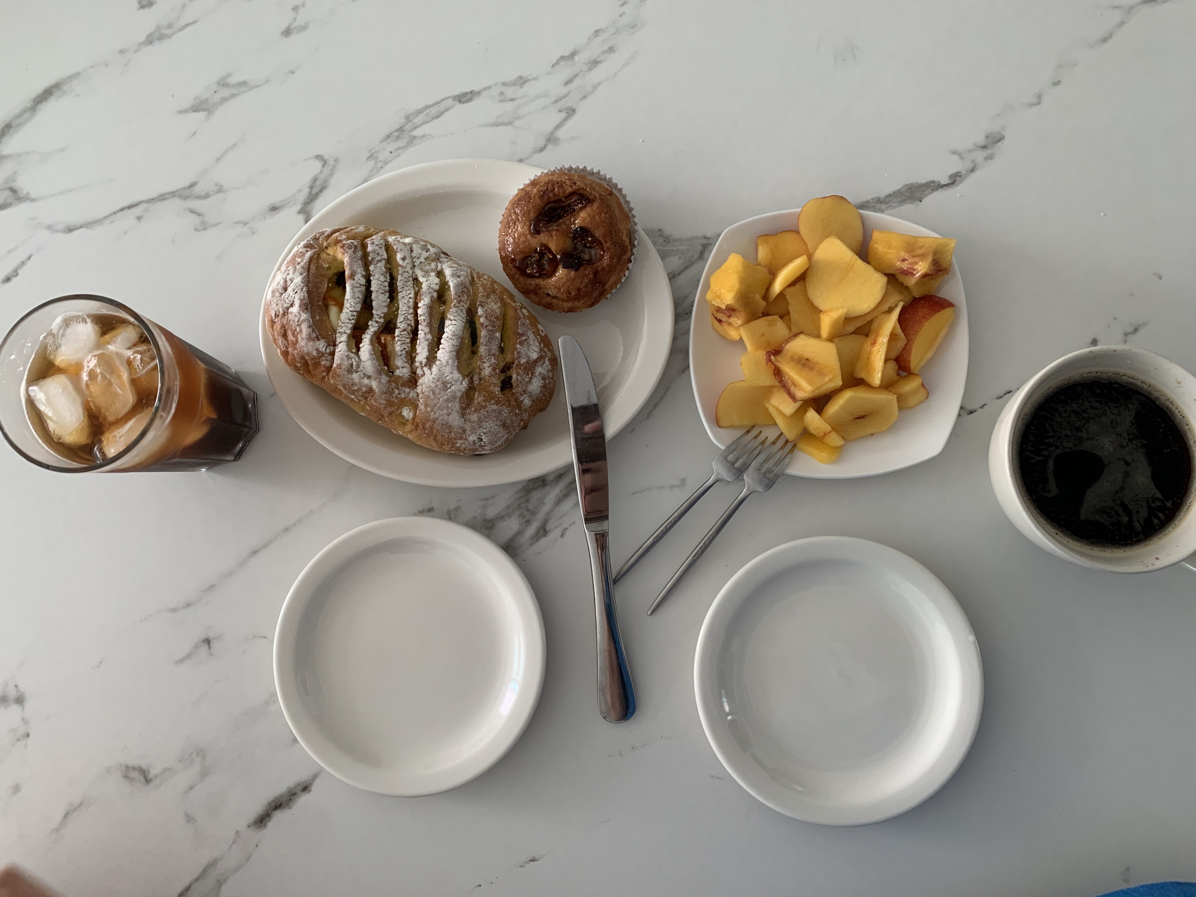 오늘은 주말이라 아점으로 빵과 복숭아를 먹었다.