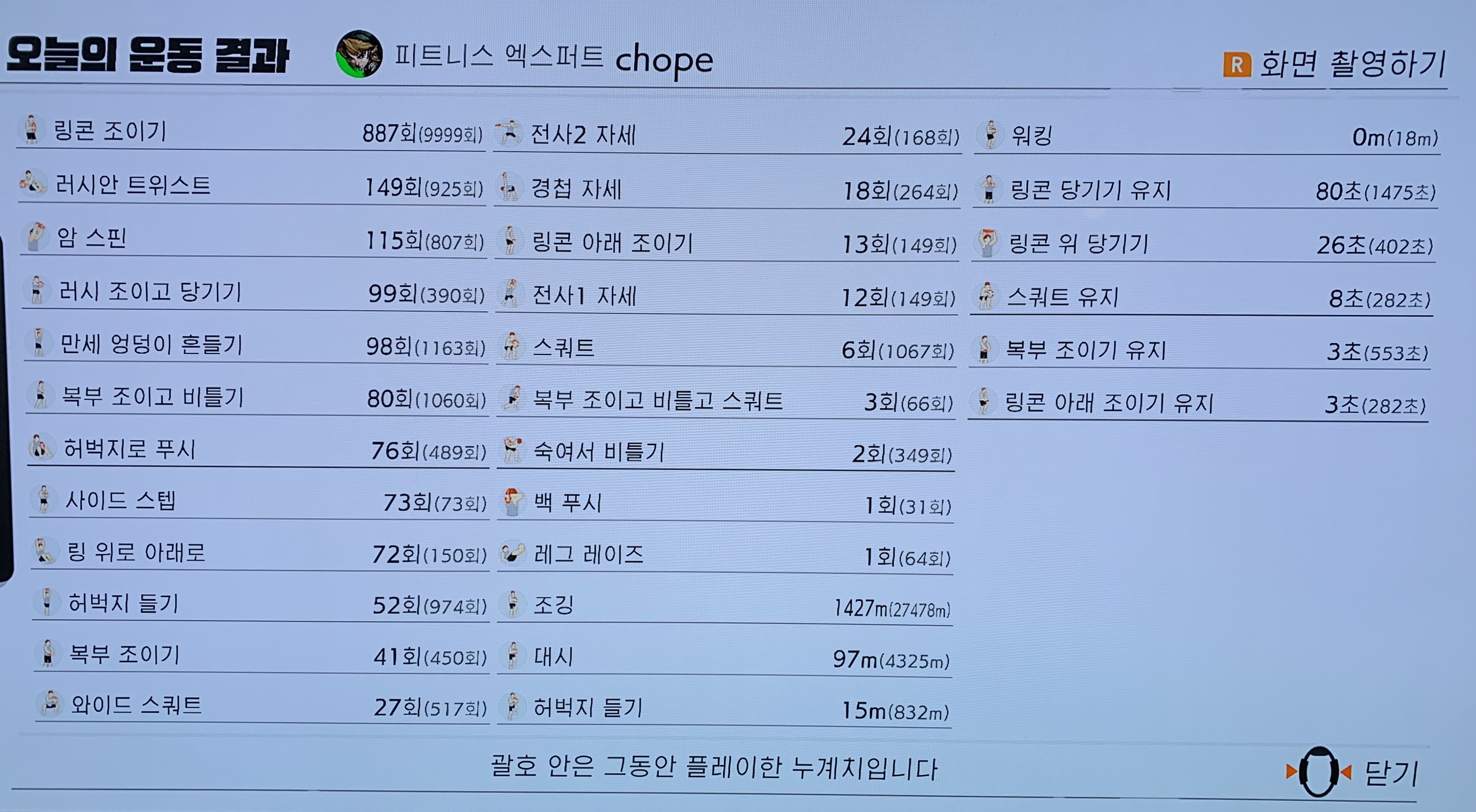아마 지금까지 한 링피트 중에 가장 오랜 시간을 한 것 같다.