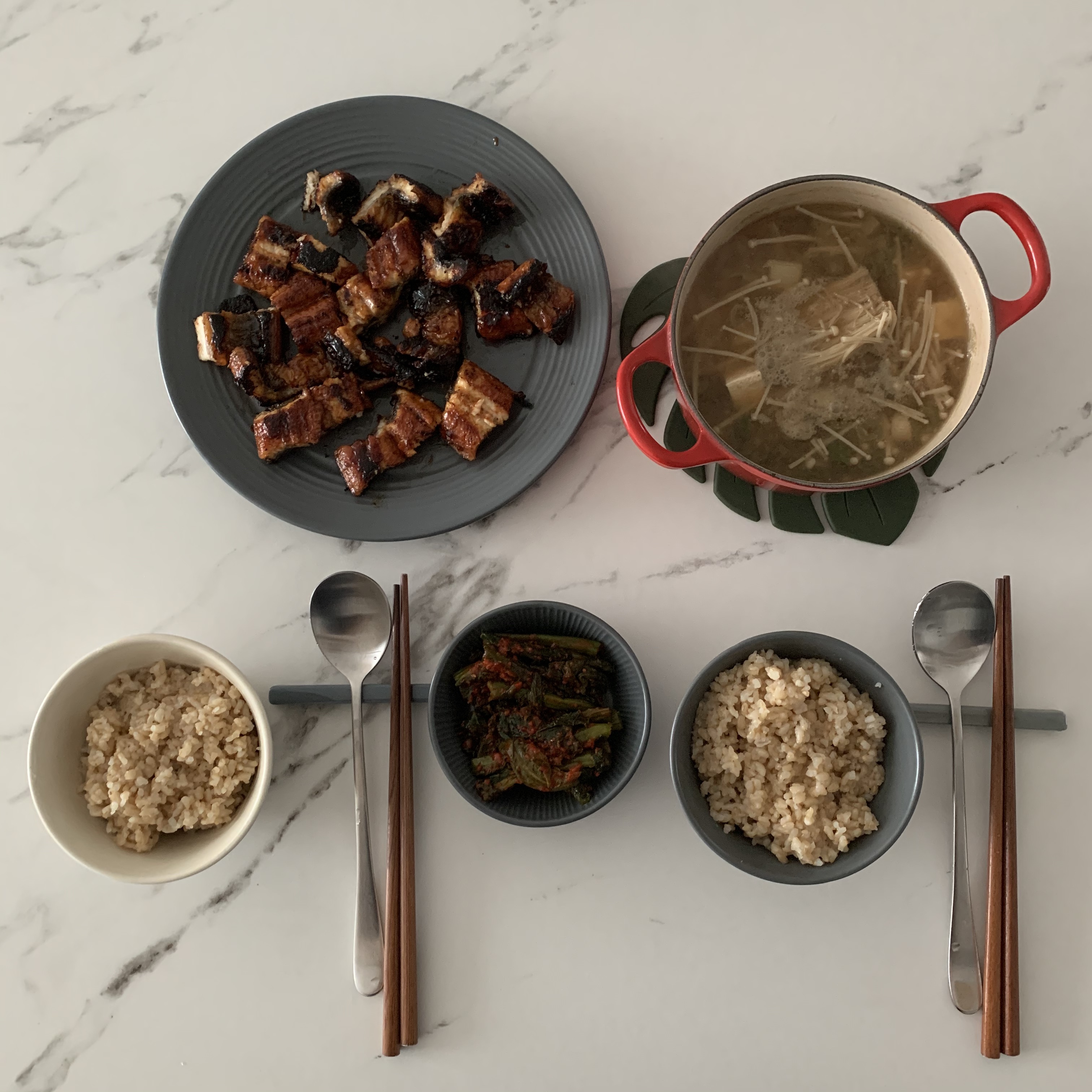 점심은 된장찌개와 냉장고에서 쫓아낸 장어구이