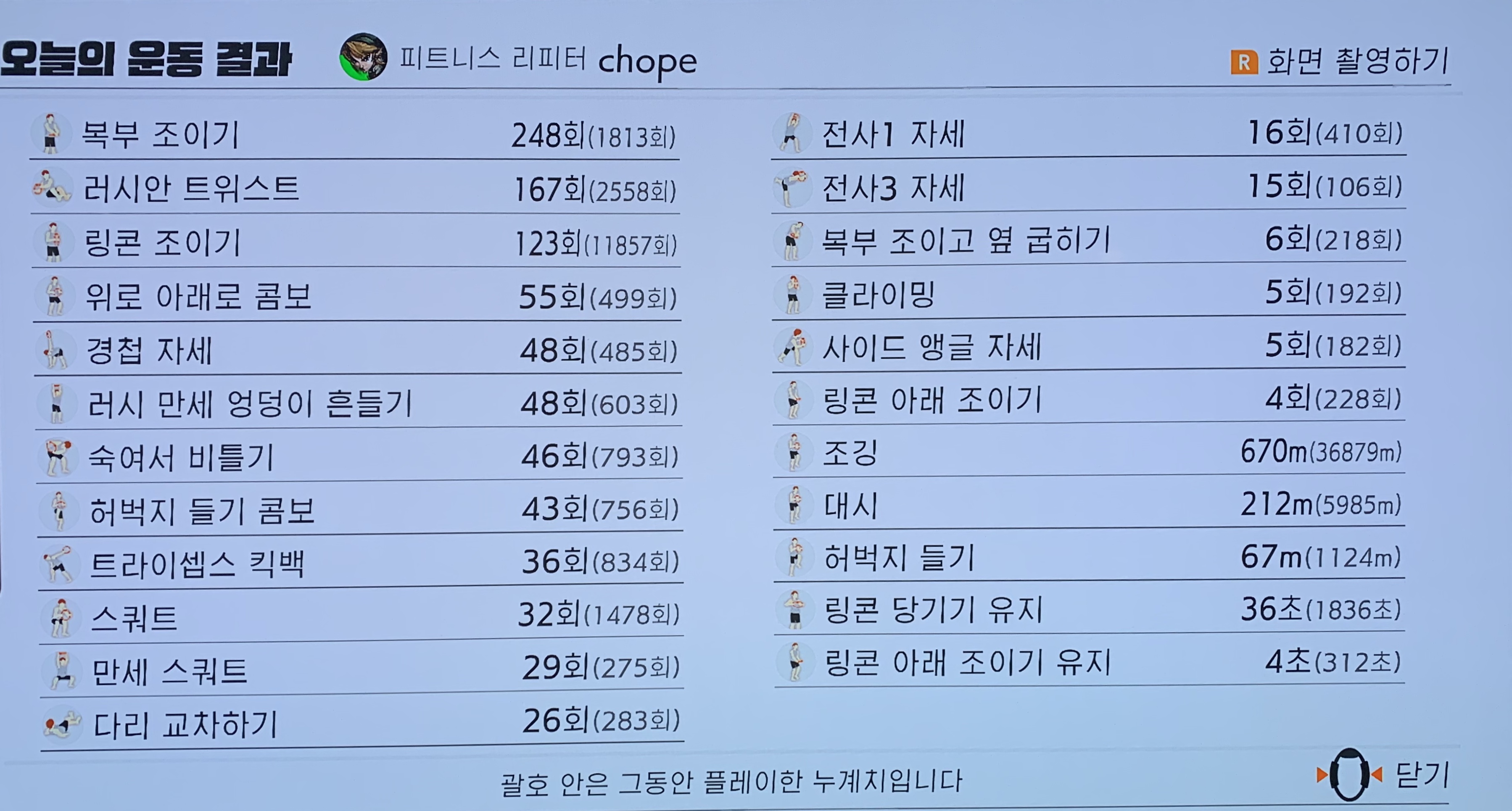 어제 링피트를 많이 해서 좀 더 좋아질 줄 알았는데... 차이가 별로 없네