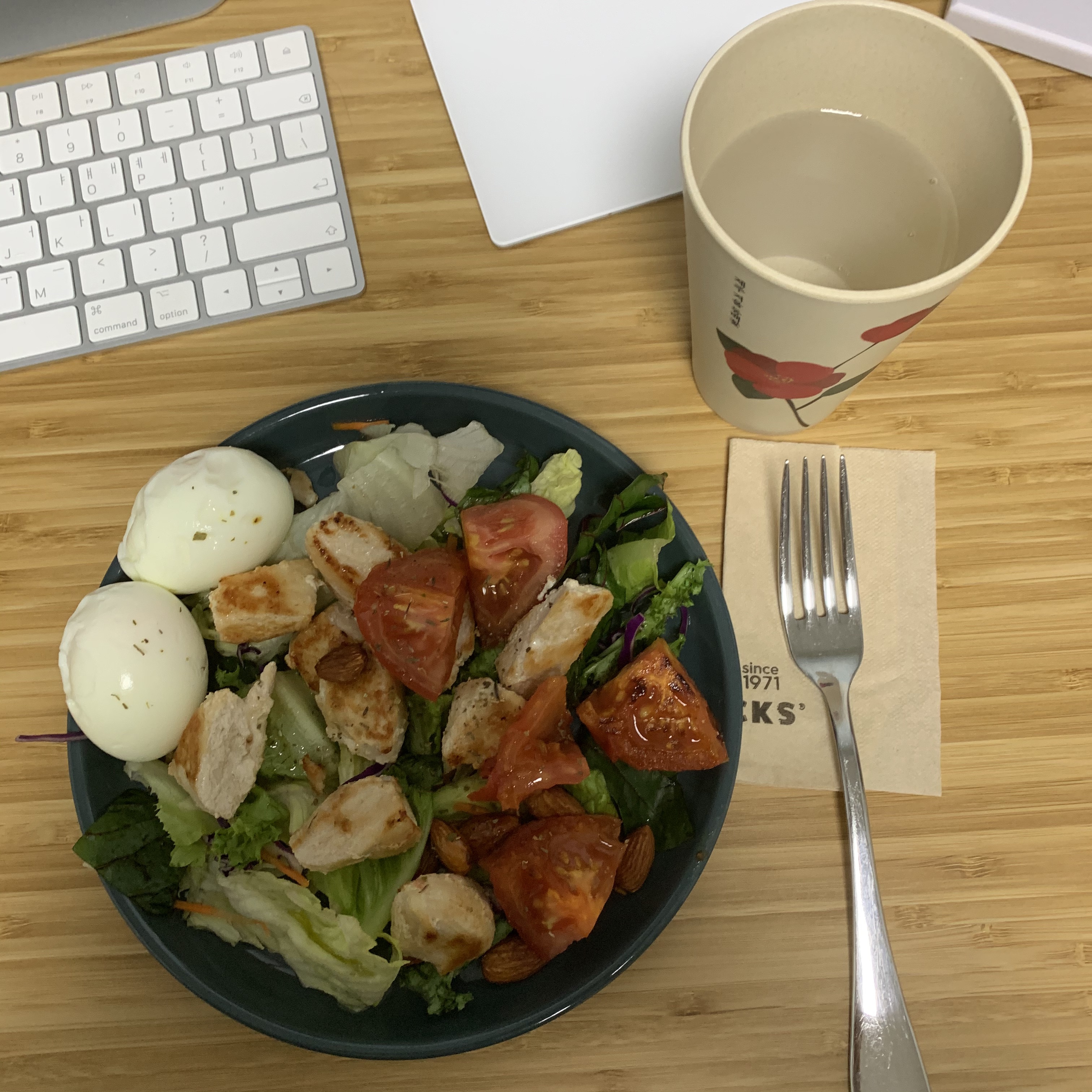 저녁은 닭가슴살, 삶은 계란, 토마토 샐러드