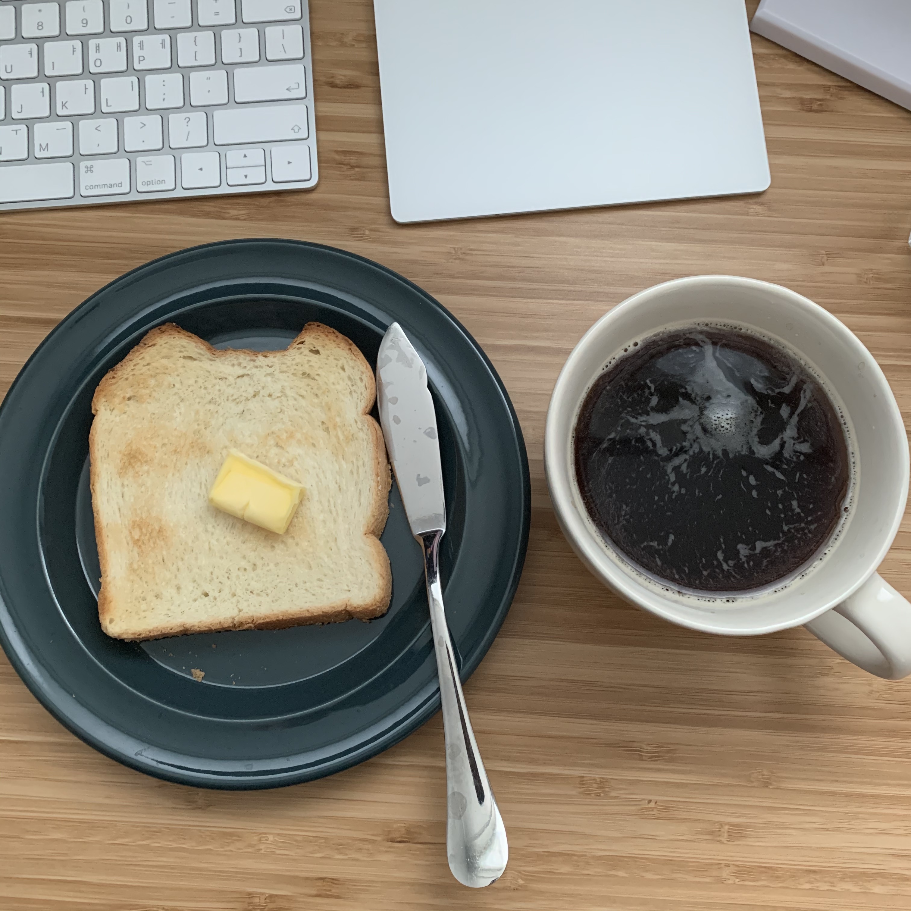 아침은 빵으로 시작해서 간식을 조금씩 먹었다.