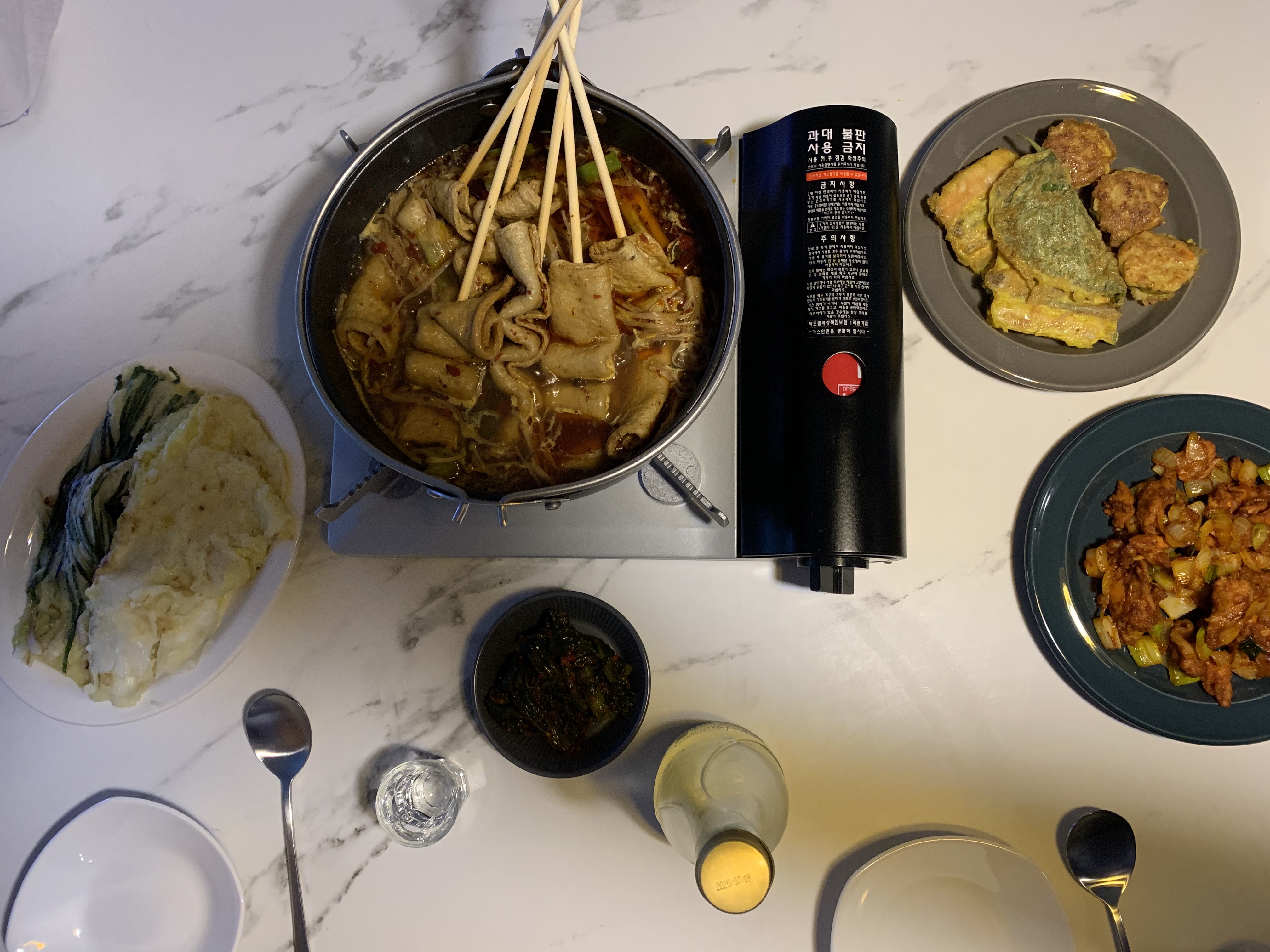 내가 준비한 마라오뎅탕, 닭갈비, 어제 가져온 전