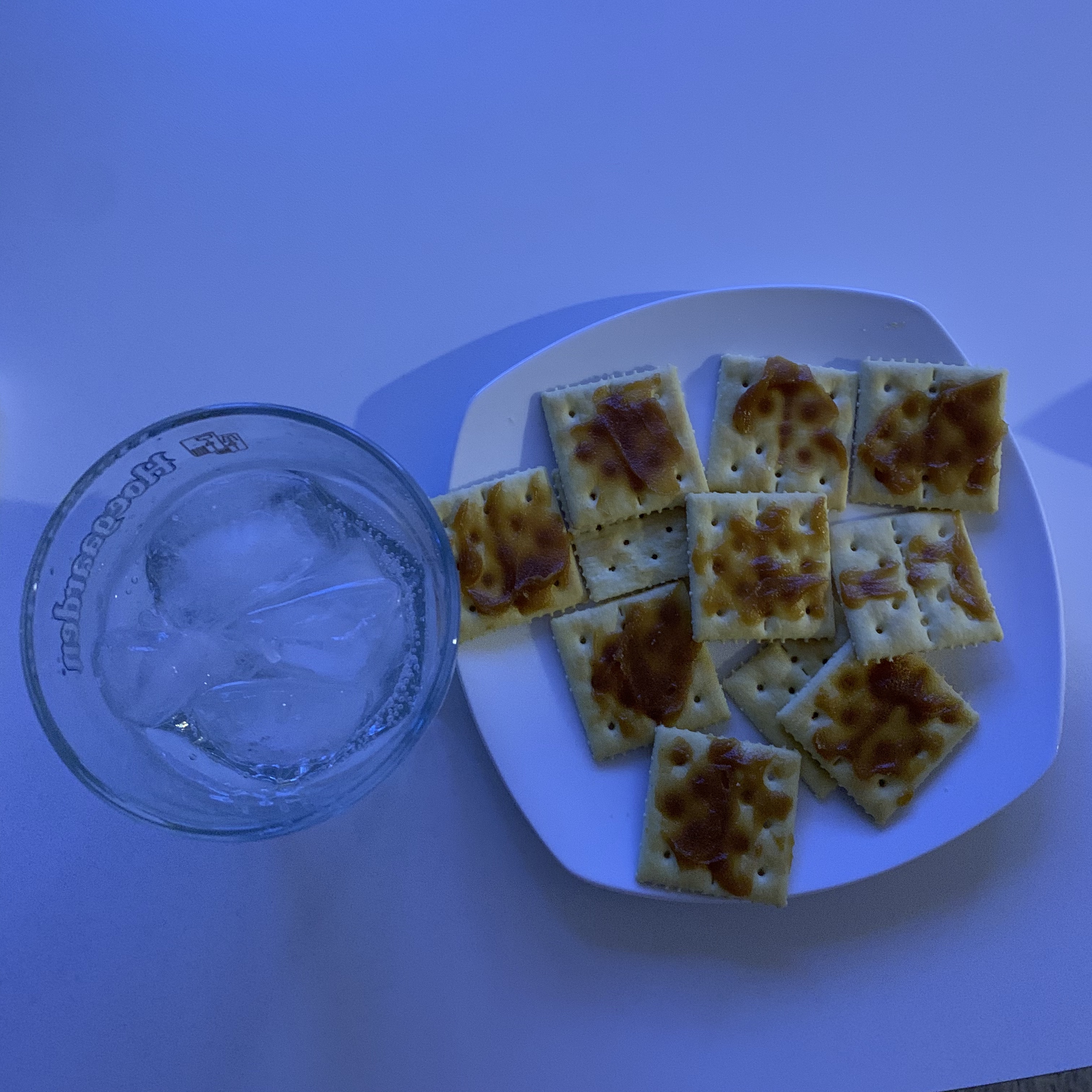 사이다와 카야잼을 올린 참 크래커를 먹었다.