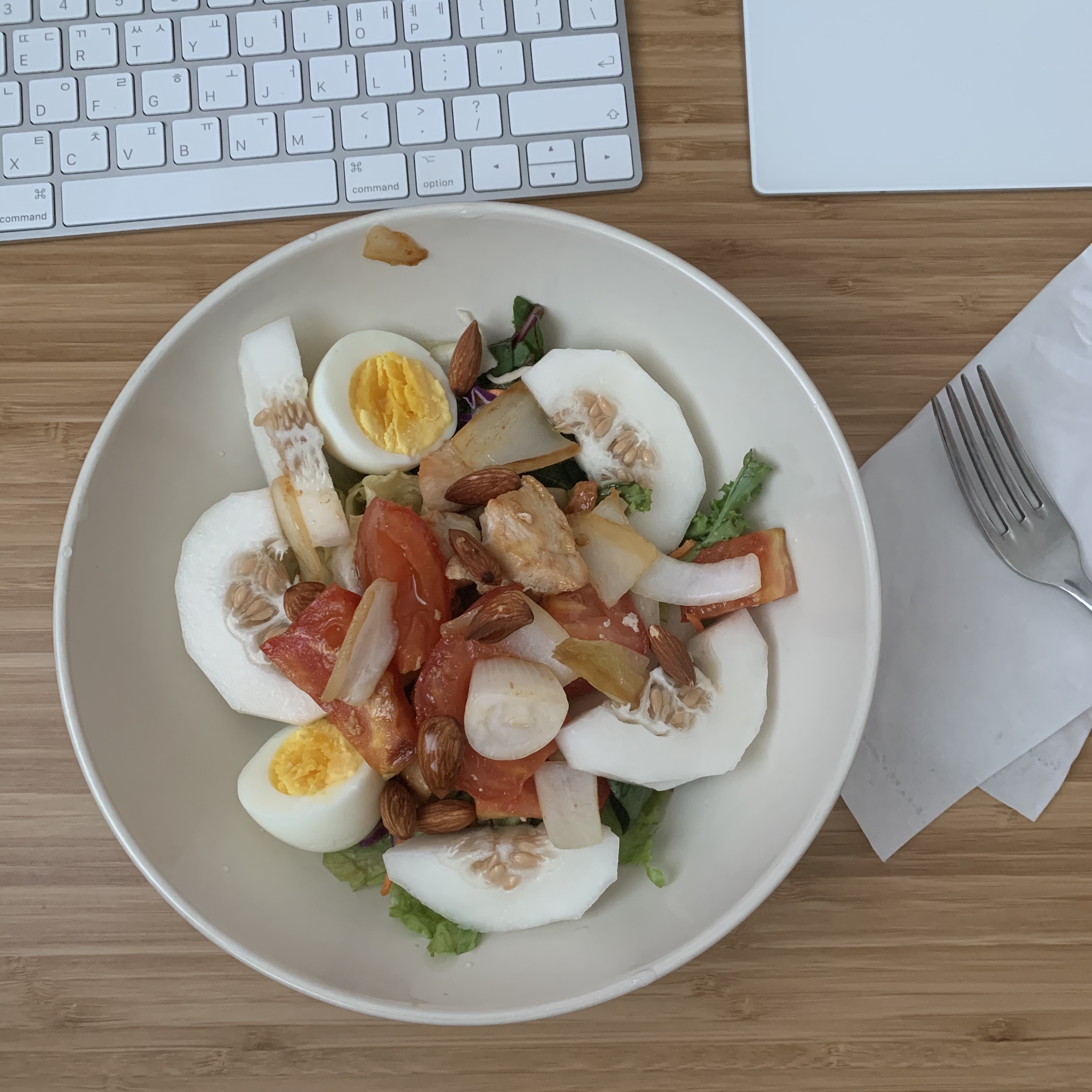 삶은 계란이 들어와 퍽퍽해진 입속을 참외가 촉촉하게 해 준다.