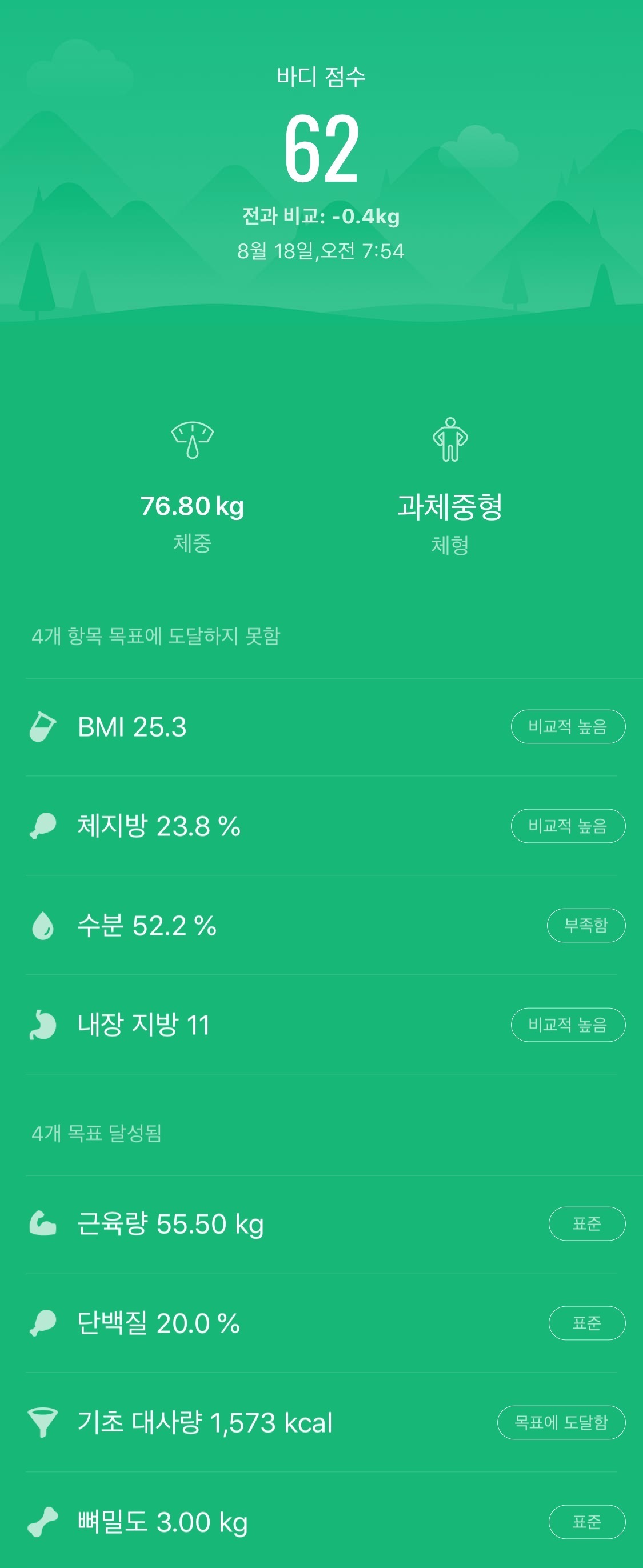 술을 덜 마셔서 인가? 1점이 올랐다.