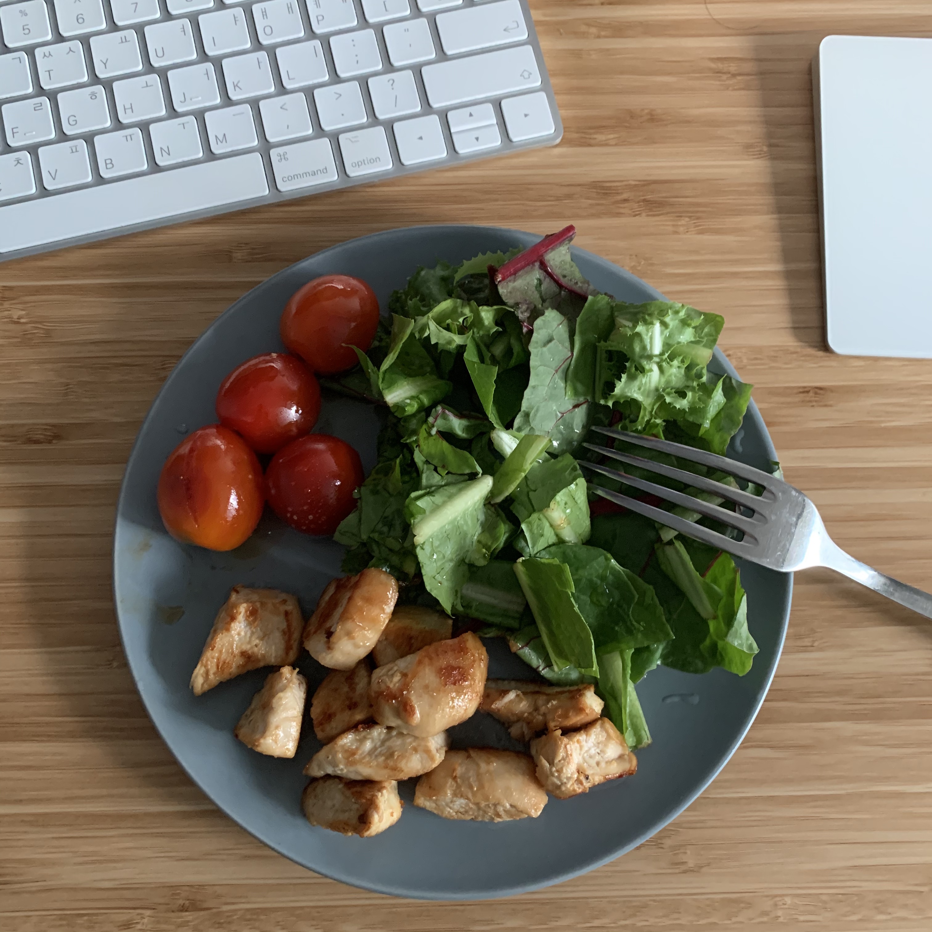 아내가 정성스럽게 준비해 준 닭가슴살 샐러드
