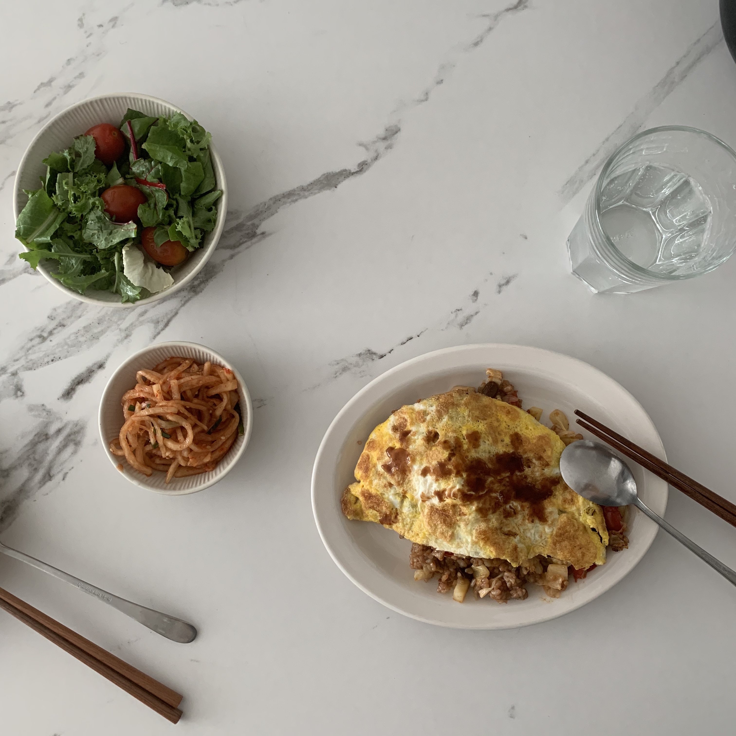 아내가 힘들게 준비해 준 샐러드와 볶음밥