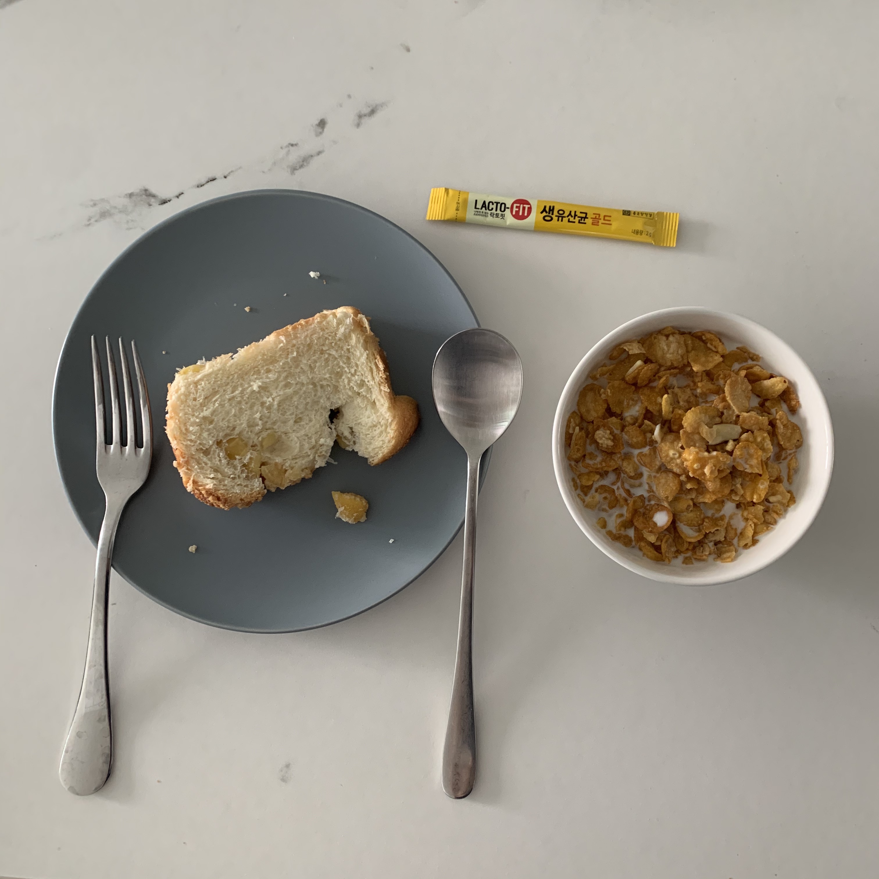 어제 간식으로 먹은 밤빵과 함께 그래놀라로 시작