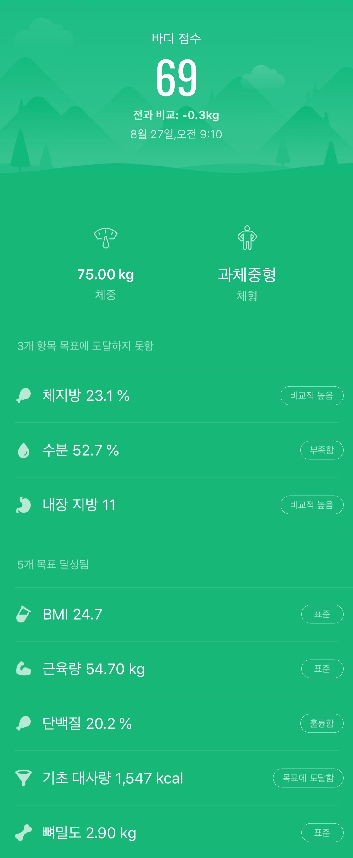 이번 주도 운동을 거의 못했지만 음식은 조절 중이라 괜찮은 듯하다.