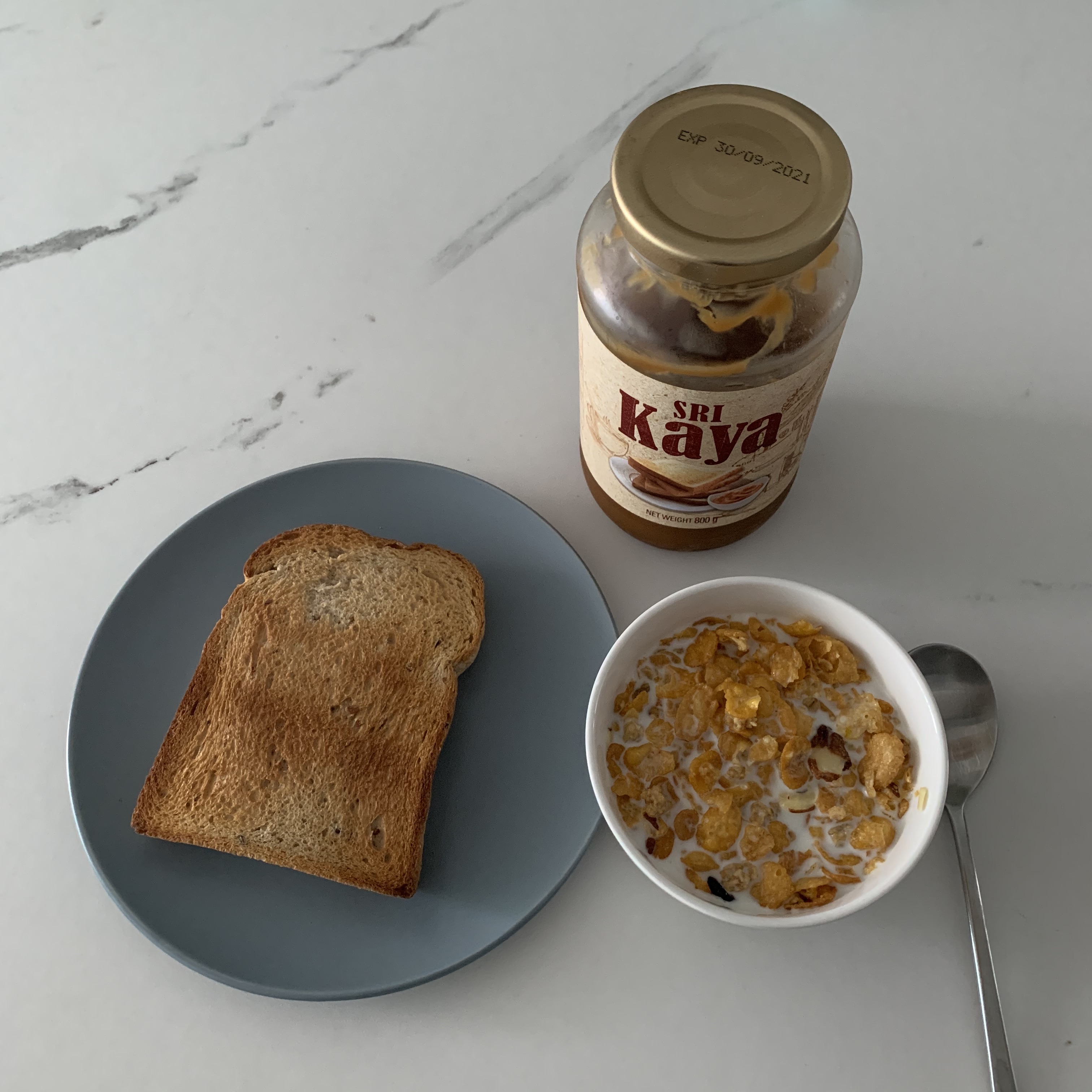 토스트 1개, 카야잼, 시리얼