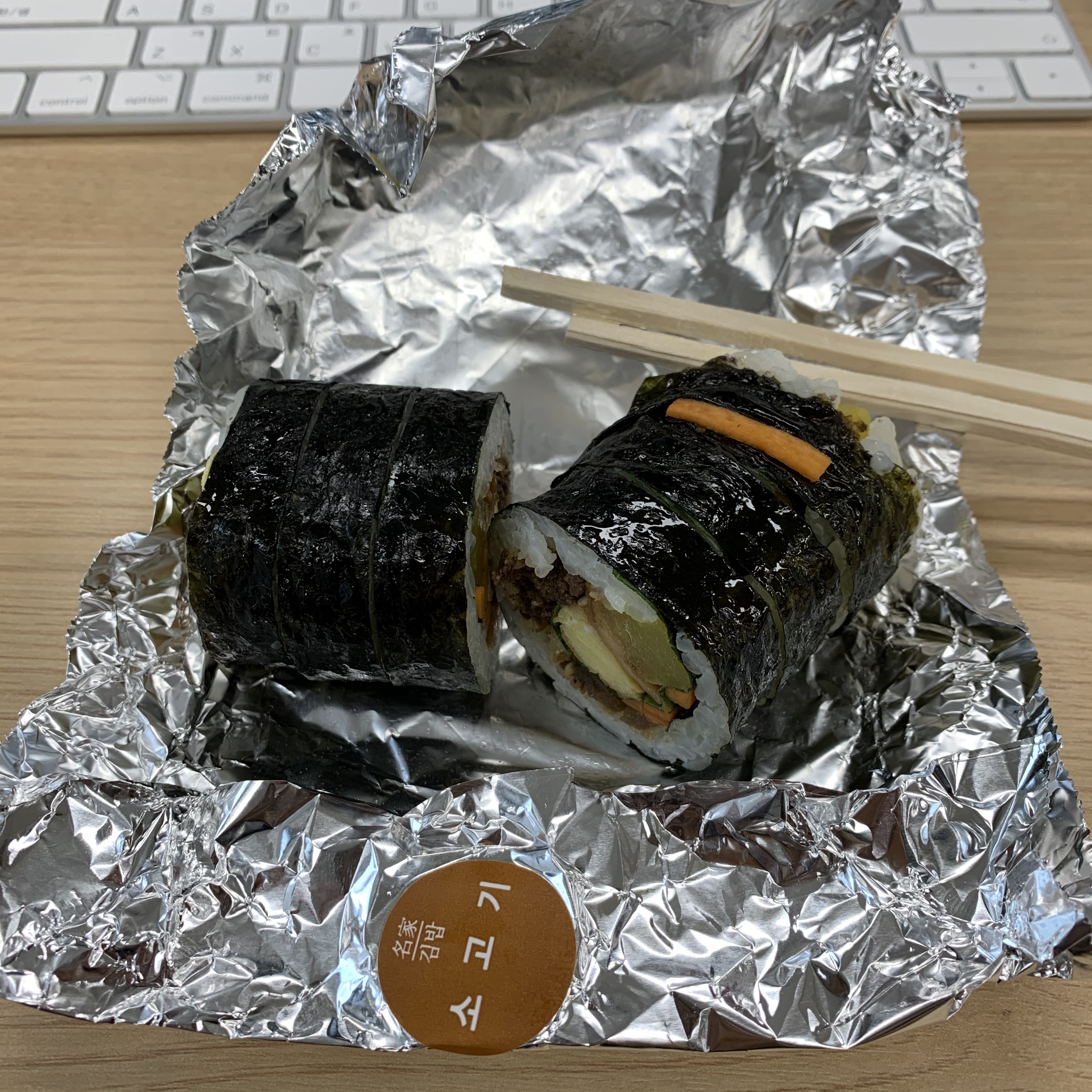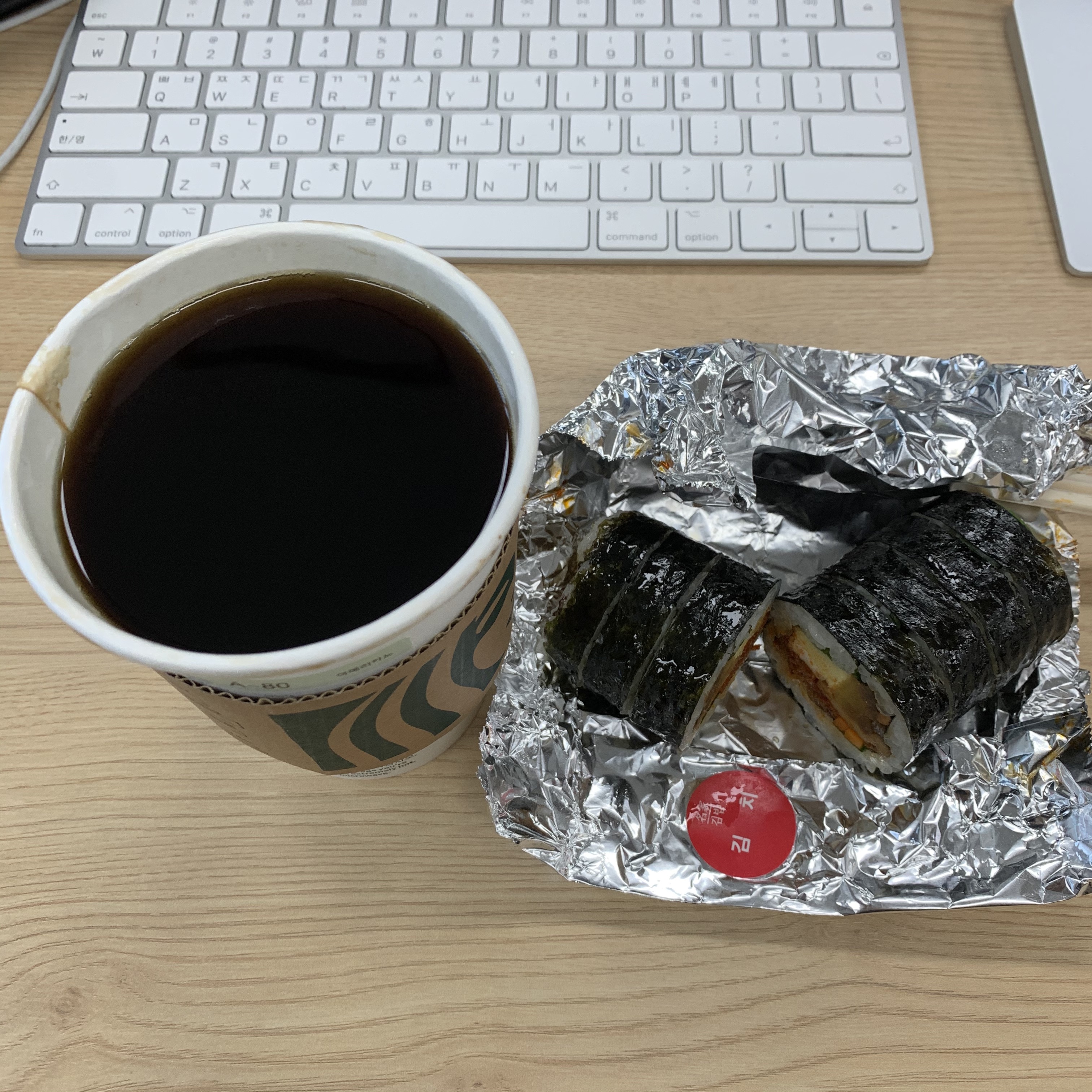 처음으로 아침 김밥을 2개 먹었다.