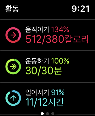 출퇴근하고 일만 했는데도 하루 활동량은 다 채웠다.