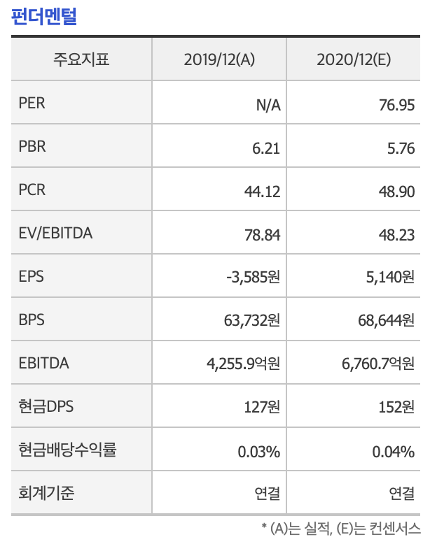 이제 펀더멘털에 나와 있는 2020/12 의 PER 가 나왔네요.