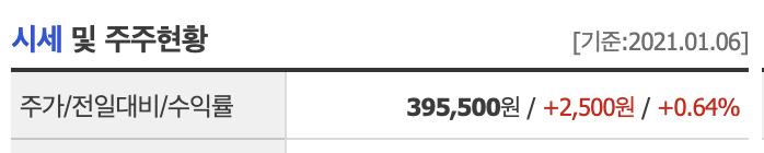 PER = 주가 / 주당순이익(EPS) = 395,500 / 5,140 = 76.945 ≒ 76.95