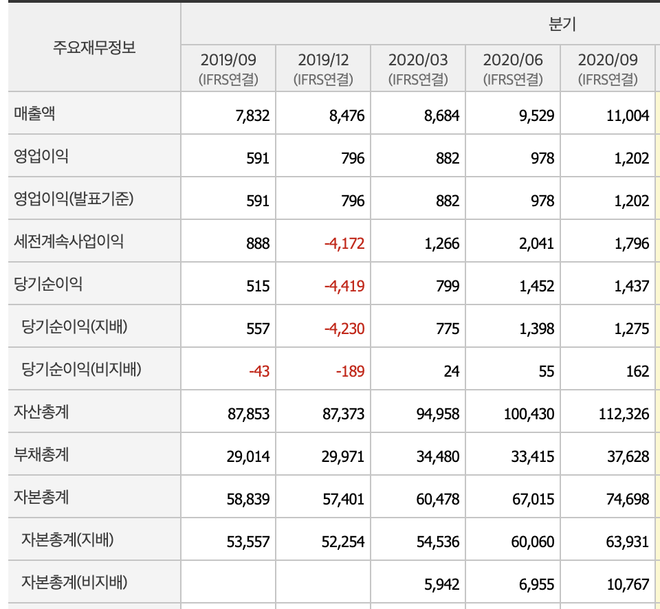 아직 2020년 4분기 보고서는 올라오지 않아서 3분기 보고서로 확인해보자.