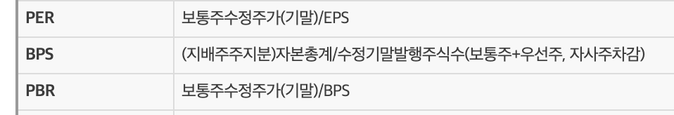 BPS(주당순자산가치) = 자기자본 / 발행주식수